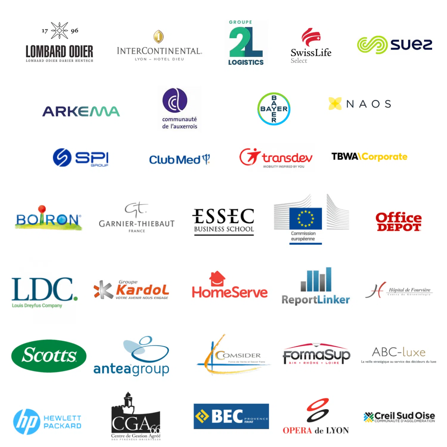 Depuis 15 ans, j’interviens au sein de grands groupes et ETI diverses : InterContinental Lyon-Hôtel-Dieu, Bayer, Arkema, Club Med, Essec MBA Luxe, TBWA, Garnier-Thiebaut…